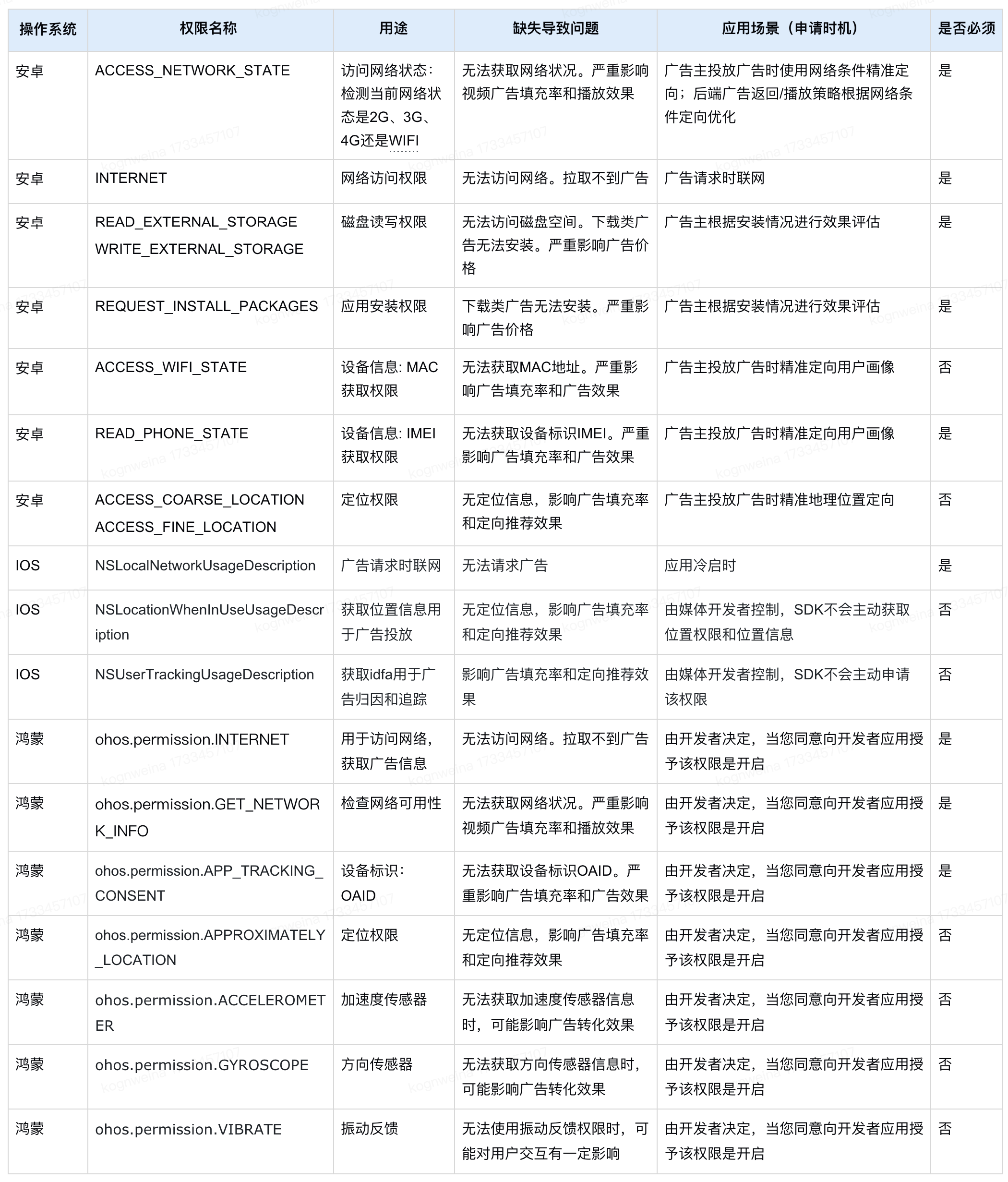 | QUERY_ALL_PACKAGES | 应用软件列表 | 【可选】获取应用软件列表 进行广告投放及反作弊 |